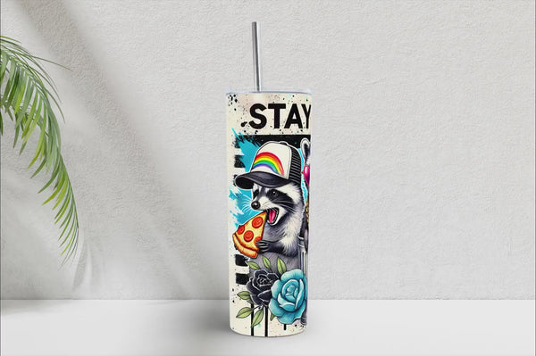 Stay Trashy Raccoon 20 oz Skinny Tumbler PNG, Sublimation Design, Digital Download PNG, Funny Raccoon Possum SkunkTumbler Wrap